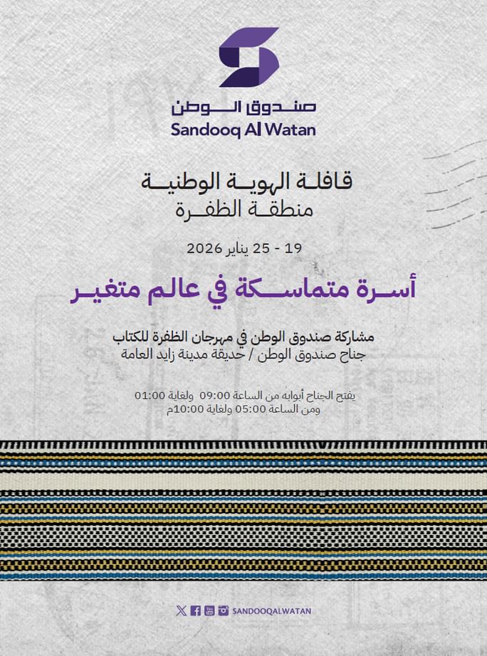 تأتي مشاركة صندوق الوطن في مهرجان الظفرة للكتاب، تأكيدا على دوره في ترسيخ الهوية الوطنية وتعزيز القيم الثقافية الإماراتية، من خلال منظومة متكاملة من الفعاليات المعرفية والمجتمعية، التي تجمعها معا " قافلة الهوية الوطنية بالظفرة، ويطلقها صندوق الوطن تحت شعار "أسرة متماسكة في عالم متغير".