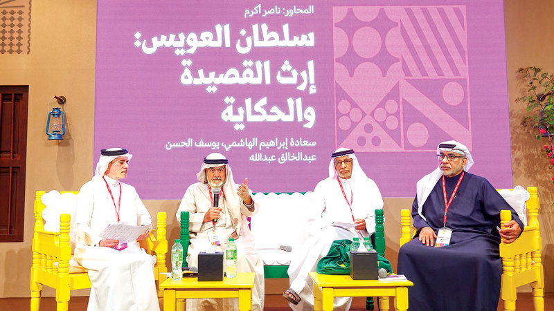 جانب من جلسة «بين إرث القصيدة والحكاية» ضمن فعاليات المهرجان. تصوير: زيشان أحمد