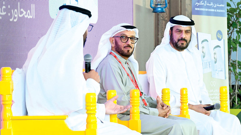 محمد أحمد المري خلال الجلسة الحوارية ضمن فعاليات المهرجان. وام