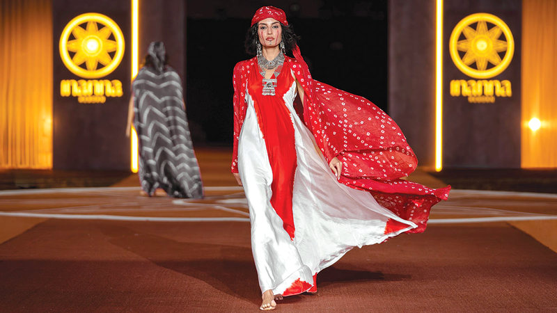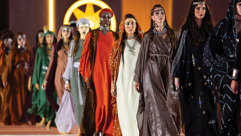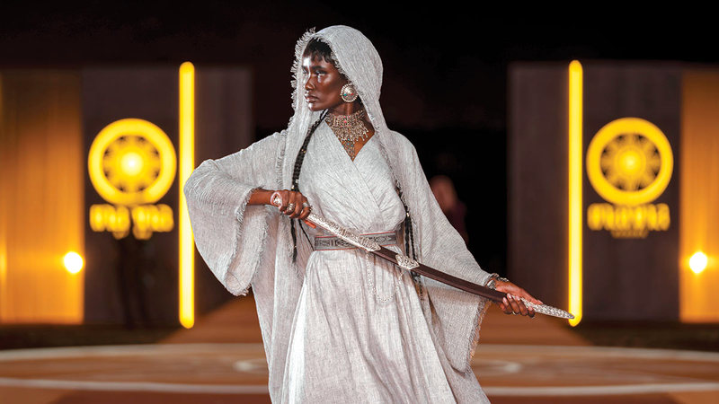 وتحت سماء الصحراء، ومع عروض الشاشات التي انعكست على الجبال، انطلقت فئة جديدة في عالم التصميم تحت مسمى «الفخامة الأسطورية»، حيث ترتقي الأزياء لتغدو تعبيراً نابضاً عن الذاكرة والهوية. وتسعى التصاميم إلى إعادة إحياء الهوية في أبهى صورها، مستلهمة تصاميمها من الأمجاد الغابرة والإرث النابض لملكات تاريخيات مثل زنوبيا وبلقيس وماوية وشمسي وأبيئيل، ثم تترجم هذا الإرث إلى خطوط تصميمية تنساب بخفة الصحراء وتنبض بهيبة الملوك، وصُمّمت القطع بوصفها «أثواباً ملكية معاصرة»، تجمع بتناغم دقيق بين نعومة الملمس وتماسك البنية، والحضور الآسر وانسيابية الحركة، وقوة التعبير ورهافة الأنوثة.