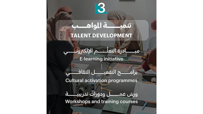 أما محور «الإنتاج الإبداعي» فيضم مجموعة من البرامج، من أبرزها «منحة دبي الثقافية»، و«المنح الصغيرة» بالتعاون مع «فن جميل»، و«التكليفات الإبداعية المصغّرة» بالتعاون مع «لكجرينت للتصميم»، الذي أسسه رائد الأعمال الإماراتي، سعيد سيف الكتبي، إضافة إلى «منحة المعارض الفنية» بالتعاون مع «آرت دبي»، ويشمل محور «تنمية المواهب» استمرارية مبادرة التعلم الإلكتروني بالشراكة مع «لينكد إن»، أكبر شبكة مهنية في العالم.