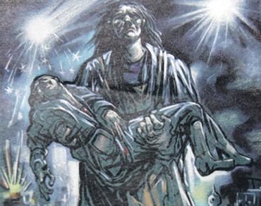 يروي هوسن عن تلك المشاهد، وهو يقف بالقرب من نافذة مرسمه، ومن خلفه بدت تلال اريشاير للعيان، تومض في ذلك الصباح الشتوي، بينما يسود في الداخل هدوء جليل . ينهمك هوسن في عمله، وعلى أرضية الغرفة تتناثر صور تعبر عن العزلة والاضطهاد والدمار، انتزعها من كراسته، تنافس كل منها الأخرى في مشاهد الفزع والخوف والرعب . تنضح إحدى الصور بالألم، بعض الصبية يفرون من شيء مفزع غير مرئي، تعبر إحدى اللوحات عن امرأة حامل تحتضر.