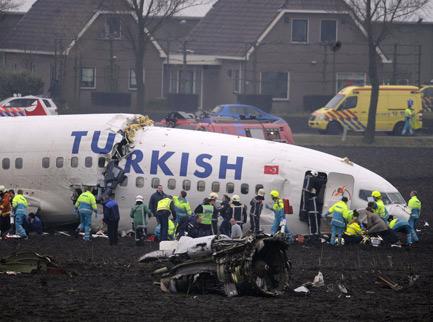 قالت السلطات الهولندية ان طائرة ركاب تركية تقل 135 شخصاً تحطمت اليوم أثناء محاولتها الهبوط في مطار سيبخول في العاصمة أمستردام.
