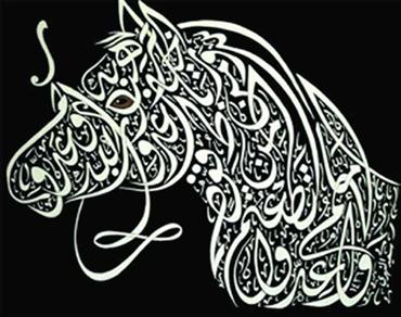 الخط الديواني الجلي أبدع كاتبه في أن يجعل من الآية القرآنية {وأعدّوا لهم ما استطعتـُم من قوة ومن رباط الخَيْل ترهبون به عدوّ اللّه وعدوّكم} لوحة تشكيلية في غاية الروعة.