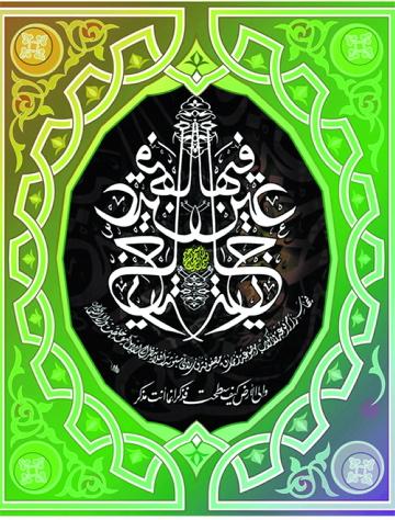 لوحة فنية في غاية الروعة، أبدع خطاطها في كتابة آية قرآنية مستخدماً خط الثلث أساسا، ووشّحه بالديواني والفارسي، بإطار مزخرف أخاذ