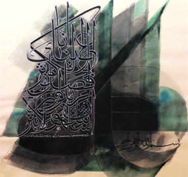 حروفية للفنان عثمان وقيع الله يظهر فيها جمال وانسيابية الخط العربي، في تداخل رائع بين كلمات السورة الكريمة.