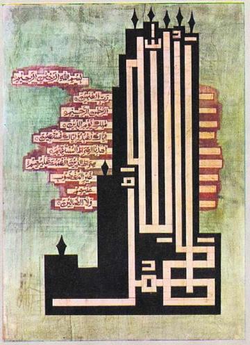 سورة الفاتحة أبدع الفنان في كتابتها، مستخدماً خطي الكوفي والثلث.