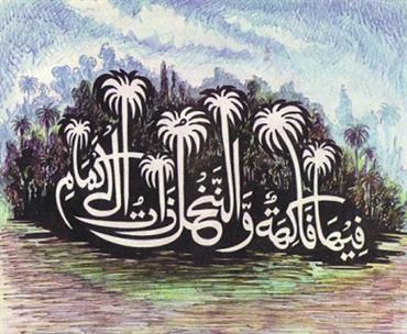 مزج الفنان بين الخط الحديث والفن التشكيلي، فأبدع هذه اللوحة.