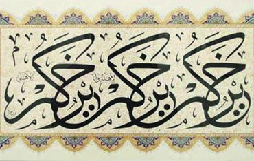 أبدع الخطاط العربي في كتابة الحديث الشريف: «خيركم خيركم لأهله وأنا خيركم لأهلي» فكان بهذا الشكل الرائع.