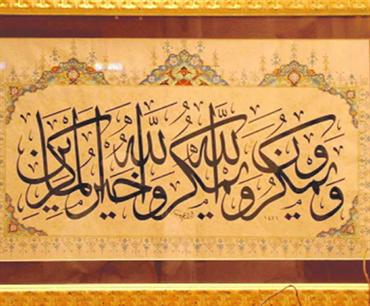 أبدع خطاط عربي في كتابة الآية الكريمة {ويمكرون ويمكر الله والله خير الماكرين} مستخدماً موهبته الفذة في هندسة الحرف فكانت لوحة رائعة ذات جمالية أخّاذة.