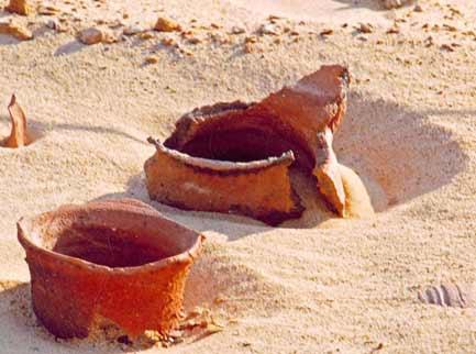 ومطاحن حجرية وسكاكين، كما اكتشفت في ربوة مرتفعة بالمنطقة 25 مقبرة صخرية وكميات كبيرة من العظام، وهو ما يرجح وجود دفنات بشرية حيث توجد في نهاية الربوة بئر صخرية عمقها سبعة أمتار في مدخلها بقايا هيكل عظمي كامل لإنسان.