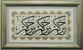 في تكرار جميل ومتناغم لكلمة واحدة من حديث رسول الله صلى الله عليه وسلم: «خيركم خيركم لأهله وأنا خيركم لأهلي»، كتب الفنان هذه اللوحة الرائعة التي جاءت حقاً تحفة تسر العين.