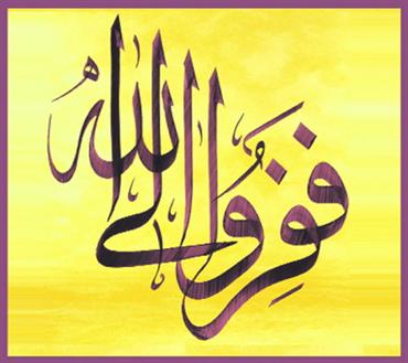 كتب الخطاط الآية الكريمة {ففروا إلى الله} بخط جميل، تظهر فيه انسيابية بين الحروف، وتدرج رائع للون أظهر من خلاله الحروف المتداخلة من دون أن يشوب اللوحة تنافر بينها.
