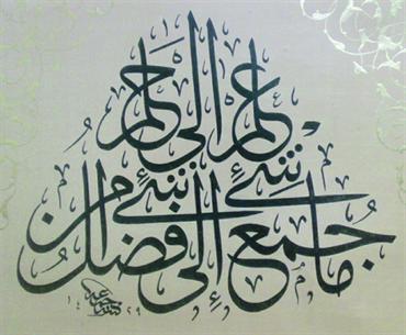 لوحة بديعة، كتب فيها الخطاط بخط جميل حكمة نافعة في كل زمان «ما جُمع شيء إلى شيء أفضل من علم إلى حلم».