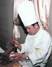 هنري آبغن من الفلبين الذي استعرض إبداعاته في النحت أمام الجمهور، قال: «أنا أعمل متخصصاً في النحت على الفواكه وعلى الثلج وقوالب الشوكولا وكل ما يخص المأكولات، وأمارس هذه الهواية منذ كنت صغيراً وأعمل حالياً في أحد الفنادق الفاخرة في دبي».