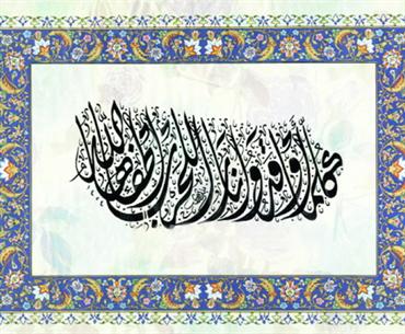 لوحة جميلة كتب فيها الخطاط الآية الكريمة {كلّما أوقدوا ناراً للحرب أطفأها الله}. ونثر بين الفراغات الحليات بشكل مكثف، ما أعطى شكلاً جمالياً لتلك اللوحة.