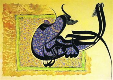 لوحة بديعة كتب فيها الخطاط «سورة الناس»، وجاءت البسملة تحفة فنية زينها الخطاط بزخارف نباتية من الداخل، واختار ألوان الحروف والزخارف لتظهر روعة اللوحة وجمالياتها.