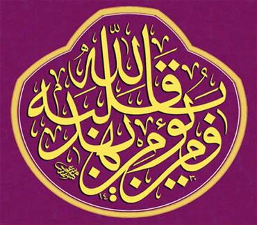 لوحة رائعة كتب فيها الخطاط الآية الكريمة {ومن يؤمن بالله يهد قلبه} بخط الثلث .