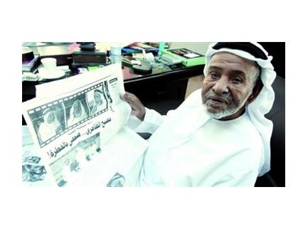 وأضاف «تطورت فكرة الإعلان، فصرت أكتب على الورقة أخبار الناس، المواليد والوفيات والأعراس والطلاق في مناطق العين، وزوار مدينة العين والبريمي، وجريان الأودية، ووصول القوافل التجارية التي تأتي من أبوظبي ودبي والشارقة، وأحوال الطريق من العين إلى أبوظبي، ومن العين إلى دبي، إضافة إلى ما كنت أسمعه من أخبار الإذاعات، خصوصاً إذاعتي «صوت العرب» و«لندن»، ورحت أصدر قرابة 10 نسخ من الصحيفة بشكل أسبوعي، ثم زودت المقهى بجهاز أسطوانات غنائية وموسيقية تسمى «البشتختة»، اشتريتها من البحرين، وكنت أضع أغنيات قديمة لمطربين خليجيين، أمثال محمد زويد وسالم الصوري.