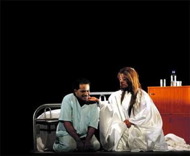 ومثلما حاولت المرأة المتشحة بالسواد أن تحتويه بعباءتها، كان الفعل نفسه مع الأخرى الذي تبين فيما بعد أنها طيف زوجته الراحلة، قبل أن ينسج كلاهما حديثاً معبراً مع وسادة ظناها ابنهما الذي مات، لينسدل الستار في مشهد جنائزي قام فيه المريض بما يشبه تكفين نفسه، بعد أن تدثر بفراش السرير الأبيض، ومثله فعلت المرأة الطيف، ليستسلم كل منهما لجسد مسجى على الأرض بينهما (الطفل/الوسادة)، في مشهد نهائي أشبه بالحل الذي صفق له الحضور طويلاً.