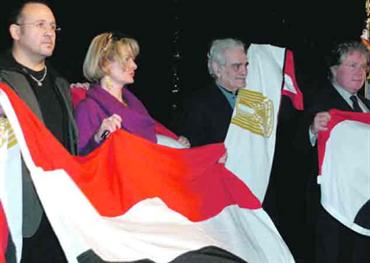 وحمل الفنانون الحاضرون في الوقفة العلم المصري ورددوا هتافات وطنية كثيرة، قبل أن تبدأ بيانات غاضبة باللغات العربية والفرنسية والإنجليزية، تلاها بالترتيب عمر الشريف ومحمود ياسين وحسين فهمي، وقرأ الأخير بياناً بالإنجليزية والفرنسية. وكان النجم عمر الشريف مثيراً للجدل كعادته، حيث تحدث بعامية مصرية عن الحضارة المصرية العريقة، وعن طيبة الشعب المصري التى يعرفها جيداً والتي ستجعله يسامح الجزائر، مردفاً «هنسامح بعد ما تجف دموعنا وننسى جراحنا، ليس الآن، ولكن، في ما بعد، بعدما ننسى ما فعله فينا بعض من أهلها».