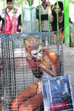 متظاهرون من منظمة «بيتا»، أو أشخاص للتعامل الأخلاقي مع الحيوانات، يطلون بهيئات تشبه القرود، في محاولة للتظاهر ضد المعاملة غير الأخلاقية مع الحيوانات، ولوقف التجارب الإشعاعية ضد القرود. وهي تظاهرات اتخذت من واشنطن ونيودلهي موقعاً لها قبل أيام.