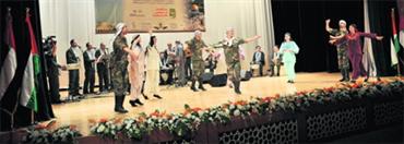 أحيت فرقة «العاشقين» الفلسطينية، أول من أمس، حفلاً غنائياً من التراث الفلسطيني، على مسرح قصر الثقافة في الشارقة. وتضمن الحفل الذي جاء ختاماً لفعاليات احتفالية «من القدس الى ابوظبي ثقافتنا واحدة»، عدداً من الأغنيات التي تتحدث عن الصمود ومواجهة المحتل الاسرائيلي، وتتغنى بالمدن الفلسطينية والعربية، وكانت الفرقة قد احيت حفلاً مماثلاً على مسرح أبوظبي في كاسر الأمواج شهد حضوراً جماهيرياً مكثفاً وقدمت في إطار ختام الاحتفالية ذاتها مسرحية «لا هواء» على خشبة مسرح كاسر الامواج في أبوظبي، ويقوم النص المسرحي على محاكاة قصة حقيقية في الواقع الفلسطيني تناول الحصار والغربة في الوطن والمنفى.