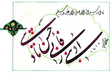 لوحة جميلة كتب فيها الخطاط معد العزاوي، بخط التعليق، الحديث الشريف: «أدّبني ربي فأحسن تأديبي».