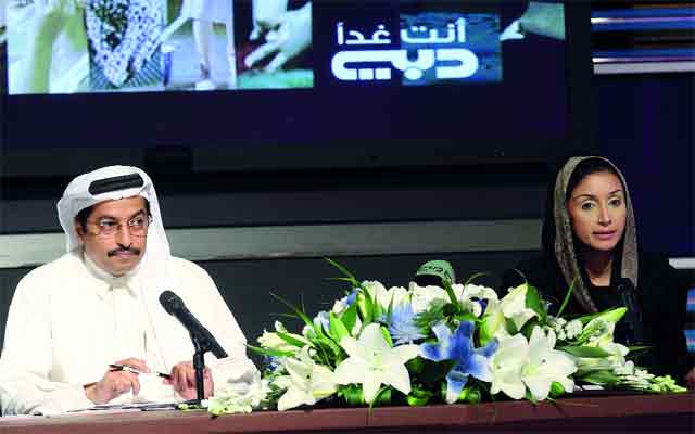 نجلاء العوضي وعمر غباش يستعرضان ملامح الدورة البرامجية الجديدة. تصوير: ساتيش كومار
