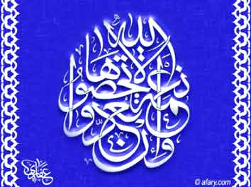 لوحة جميلة كتبت فيها الآية الكريمة: {وَإِنْ تَعُدوا نِعْمَةَ اللهِ لا تُحْصُوهَا}.