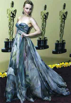 كان إيلي صعب على موعد آخر على السجادة الحمراء، مقدماً تصميماً آخر من ابتكاراته التي لا يمكن سوى أن تلفت الأنظار، وعلى الرغم من تفادي معظم النجمات ارتداء الفساتين المطبعة على السجادة الحمراء حذراً من المبالغة، إلا أن الممثلة راشيل ماك أدامز وُفقت بفستانها ذي طبعات الورود الباهتة، التي بدت أقرب إلى لوحة فنية ربيعية، بانسيابيته العفوية.
