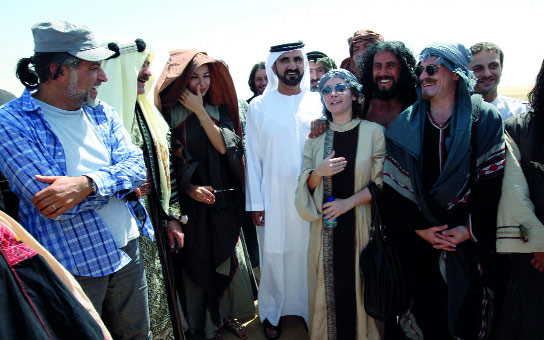 وراقب صاحب السمو الشيخ محمد بن راشد آل مكتوم، بحضور مدير عام المكتب الإعلامي لحكومة دبي احمد عبدالله الشيخ عن كثب عملية تصوير أحد مشاهد المسلسل الذي يشارك فيه اكثر من 50 فنانا وفنانة من نجوم الامارات والخليج والوطن العربي، واستمع الى لهجات الممثلين البدوية، وحاورهم سموه وتجاذب مع المخرج حاتم علي أطراف الحديث حول نجوم المسلسل والسيناريو والحوار الذي اعده السيناريست عدنان عودة، ومراحل وأماكن تصوير العمل الذي يتكون من 30 حلقة يبث على قنوات مؤسسة دبي للاعلام في شهر رمضان المقبل.