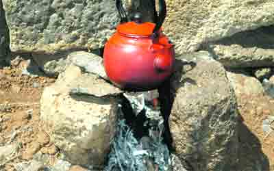 ويرى كرزون في صورة لأبريق شاي يعد على نار الحطب انها تلخص الوضع في الاراضي الفلسطينية، وقال وهو يشير الى الصورة «هذه فلسطين. النار هنا تمثل ما يجري في الأراضي الفلسطينية بسبب الاحتلال والشاي بما فيه من سكر ونعناع وشاي يمثل جمال الحياة وحلاوتها في فلسطين». وأضاف «الفضاء الذي يظهر في العديد من الصور يؤكد فسحة الحياة في فلسطين».