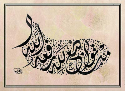 لوحة جميلة من مجموعة الخطاط عبدالرحمن الشاهد كتب فيها الحديث الشريف «من تواضع لله رفعه»، بخط الجلي الديواني.