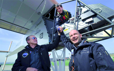 قامت طائرة تعمل بالطاقة الشمسية مصمّمة كي تطير ليلاً ونهاراً من دون وقود أو انبعاثات برحلتها التجريبية الأولى فوق الريف السويسري أمس.