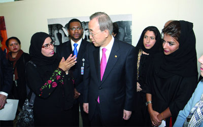 بان كي مون مستمعاً إلى فنانات إماراتيات. من المصدر