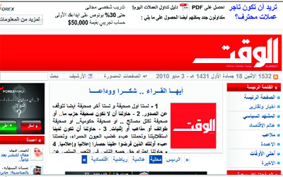 آخر أعداد الطبعة الإلكترونية من «الوقت» يودع القراء ويشكرهم.