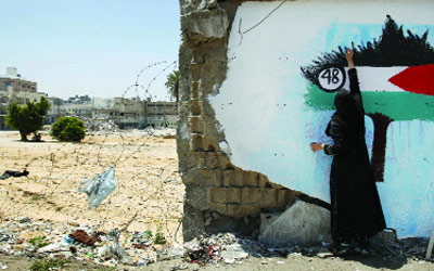 اما الشابة ديانة الحصري فأخذت تمزج ألوانا داكنة لرسم بيوت مدمرة على جدارية طولها 20 متراً، وتقول «رسوماتنا تعبر عن معاناتنا وواقعنا الأليم». وتضيف «هذه الطريقة الوحيدة التي نستطيع فيها ان نعبر حالياً عن رفضنا لهذا الواقع وللحصار الاسرائيلي والانقسام (الداخلي) والاجتياحات والحروب. لا خيارات اخرى امامنا للتعبير او التفريغ عن انفسنا»، وتتابع بغضب «حتى المقاومة اصبح فيها حلال وحرام وفتح وحماس. لم نعد نحتمل هذا الكم من العنف».