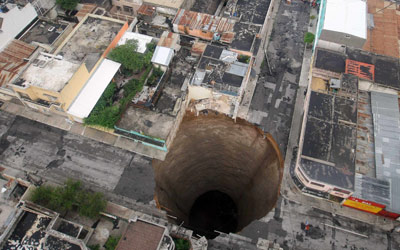 وفتحت الهوة التي يزيد حجمها عن تقاطع شوارع مع هبوب إعصار (أغاثا) الإستوائي على غواتيمالا (العاصمة).