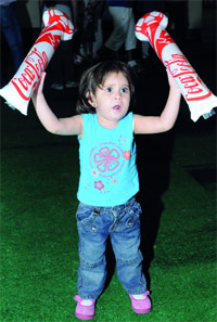 ولفتت الطفلة رند عامر من سورية (عامان)، زوار ركن الألعاب الرياضية في عالم مدهش، إذ حضرت برفقة والدها إسماعيل عامر، ووالدتها وفاء الصحناوي، لمتابعة مباريات كأس العالم، التي لا تعي رند عنها شيئاً، لصغر سنها، إلا أنها وبفطرتها الجميلة، أخذت ترقص وتركض، فرحة بالأجواء الحماسية التي سادت الركن. فتارة تصعد المدرج، وأخرى تهبط منه ضاحكة وسعيدة، وتنظر إلى شاشة «كوكا كولا» العملاقة، التي استحدثت في الركن ليحظى عشاق المونديل بفرصة متابعة المباريات بشكل مجاني وبأجواء حماسية. كما عبرت رند عن فرحتها بحمل البالونات والتصفيق بها، والتلويح لوالديها بوجودها هنا وهناك، لتلعب مع الأطفال حيناً وتشارك في رياضة الآيروبيك حيناً آخر.