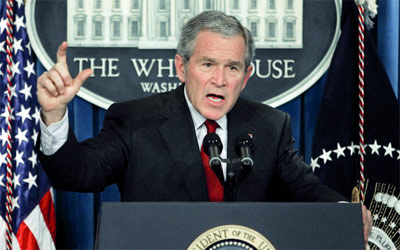 بوش من أكثر القادة الذين يحركون أيديهم أثناء الحديث. أ.ف.ب