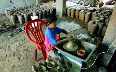 ويشعر الطفل محمود وهو يصنع الفخار بفرحة كبيرة على عكس الكثير من الأطفال الذين يستغلون الإجازة الصيفية في الترفيه.