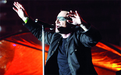 بعد توقف دام شهورا عاود المغني الايرلندي بونو، مغني فرقة «يوتو» نشاطه الفني في مدينة تورين شمالي إيطاليا. وتعد حفلة تورين أولى حفلات بونو، بعد عودته من الإصابة التي ألمت به وأقعدته عن العمل فترة طويلة، كما تعد بداية لسلسلة حفلات يعتزم إحياءها في أوروبا. وقالت وسائل إعلام إيطالية، أمس، أن بونو أحيا الجمعة حفله في تورين وسط حضور جماهيري وصل إلى 45 ألف شخص. وذكرت صحيفة «لا ستامبا» الإيطالية أن بونو ودع جمهوره بصوت مجهد بعد حفل مثير استمر لمدة ساعتين. وكان بونو خضع في مايو الماضي لعملية جراحية في المستشفى الجامعي بمدينة ميونيخ الالمانية، بعد تعرضه لإصابة في الظهر الأمر الذي أدى إلى غيابه عن الساحة الفنية لشهور، وتأجيل حفلات كان مقررا أن يحييها فيالولايات المتحدة وكندا إلى صيف .2011