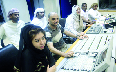 عليا الجسمي خلال إعداد إحدى حلقات البرنامج. تصوير: ساتيش كومار