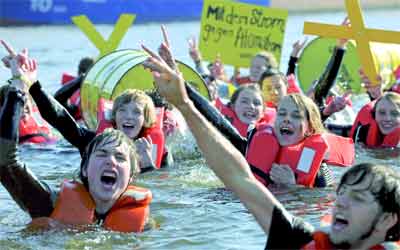 في واقعة فريدة من نوعها، نظمت مجموعة كبيرة من الشباب، أمس، في برلين مسيرة عائمة احتجاجاً على قرار الحكومة الألمانية تمديد عمل المفاعلات النووية في البلاد. وتحت شعار «لا نريد أن نتحمل عواقب قمامتكم»، قفز نحو 150 شاباً في مياه نهر شبريه بالعاصمة الألمانية برلين في الحي الحكومي، وسبحوا حاملين لافتات وبراميل سوداء وصفراء اللون (اللون الأسود شعار تحالف المستشارة الألمانية المسيحي الديمقراطي، واللون الأصفر شعار حزب وزير الخارجية جيدو فيسترفيله الديمقراطي الحر)، باتجاه مقر البرلمان الألماني «بوندستاج» ودار المستشارية. وتأتي مشاركة الشباب المقبلين من جميع أنحاء ألمانيا في الحركة استجابة لدعوة منظمة السلام الأخضر (غرين بيس) لتنظيم هذه الحركة الاحتجاجية، رداً على القرار الذي اتخذته حكومة ميركل الأسبوع الماضي بتمديد عمل المفاعلات النووية 12 عاماً، وسط احتجاجات قوية من المعارضة وأنصار البيئة. وقالت الشابة الصغيرة شتينا هينريشس (15 عاماً) المقبلة من ميونيخ للمشاركة في التظاهرة «لن يشعر معظم الساسة بتأثيرات قرار تمديد عملالمفاعلات النووية، إنما نحن الذين سنشعر بذلك، فلن يكون أحد منهم على قيد الحياة عند انفجار مفاعل نووي قديم بعد 40 عاماً». وكانت الحكومة الألمانية برئاسة المستشار السابق جيرهارد شرودر، أقرّت اتفاقاً يتم بموجبه التخلي التدريجي عن عمل المفاعلات النووية في موعد أقصاه ،2022 فيما تسعى حكومة ميركل في المقابل للإبقاء على المفاعلات النووية «كتقنية مؤقتة» لحين تطور مصادر الطاقة المتجددة، وذلك استجابة لمطالب القطاع الصناعي في البلاد.