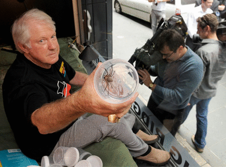 وقال الرجل البالغ 67 عاماً، لإذاعة محلية قبل أن يتخذ مكانه مع العناكب السامة ذات الظهر الأحمر، "إني لا أحب العناكب لهذه الدرجة"، مضيفاً "لا أخاف منها ولكني لا أحبها على وجه الخصوص".
