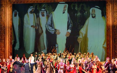 وعبّر الراوي الذي خاطب الحضور في المسرح مُجسداً صوت التاريخ والماضي، عن مآثر القائد الحالم الذي بنى دولة موحدة قوية، فيما أوحت القصائد التي اختيرت بعناية من الشعر العربي الفصيح وإرث الشعر النبطي الاماراتي، بحسية تعبيرية متسقة مع الحدث التاريخي المتصاعد.