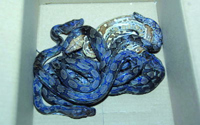 الثعابين الأربعة داخل صندوق من الكرتون. من المصدر