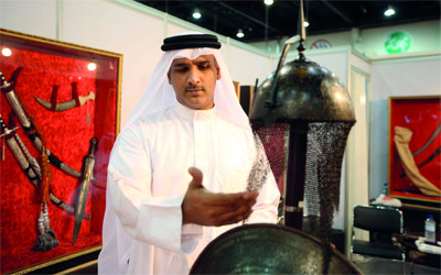 وعرض الخبير البحريني في جناحه بمعرض الصيد والفروسية مجموعة نادرة من السيوف والخناجر «الجوهر»، التي يعود تاريخها إلى مئات السنين، مشيراً إلى ان الأغلى في مجموعته يبلغ سعره 100 ألف دولار أميركي، وهو سيف جوهر يحمل ختم «يا قاضي الحاجات»، ويحمل رمز «اللبؤة» الذي يشير إلى صانع السيوف الشهير أسدالله الذي عاش قبل العصر الصفوي، كما ضمت المجموعة عدداً من السيوف والخناجر بأشكال وأحجام مختلفة راوحت أسعارها بين 27 و45 ألف دولار، وعرض خوذة وترساً من الجوهر أيضا بسعر 54 ألف دولار، حيث كان العرب يصنعون من الجوهر أيضا دروعا تشبه «الجاكيت»، ولم يكن من الممكن اختراقها سوى بخنجر خاص يسمى خنجر الدفع، موضحاً ان المجموعة التي عرضها هي جزء من مجموعة أكبر يحتفظ بها، والتي عمل على جمعها على مدى سنوات عبر الشراء أو البدل مع مقتنين آخرين، وكثيراً ما اضطر إلى السفر لساعات طويلة للحصول على قطعة جديدة، أو حتى إلقاء نظرة على قطعة نادرة، معتبراً أن المعلومات التي توضع على الانترنت تفتقر إلى الصدقية، وكثيراً ما تكون وسيلة للاحتيال، ولذلك لا يعتمد على هذه الوسيلة في الحصول على مقتنياته.