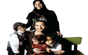 النويس وزوجته وأبناؤه الثلاثة. من المصدر